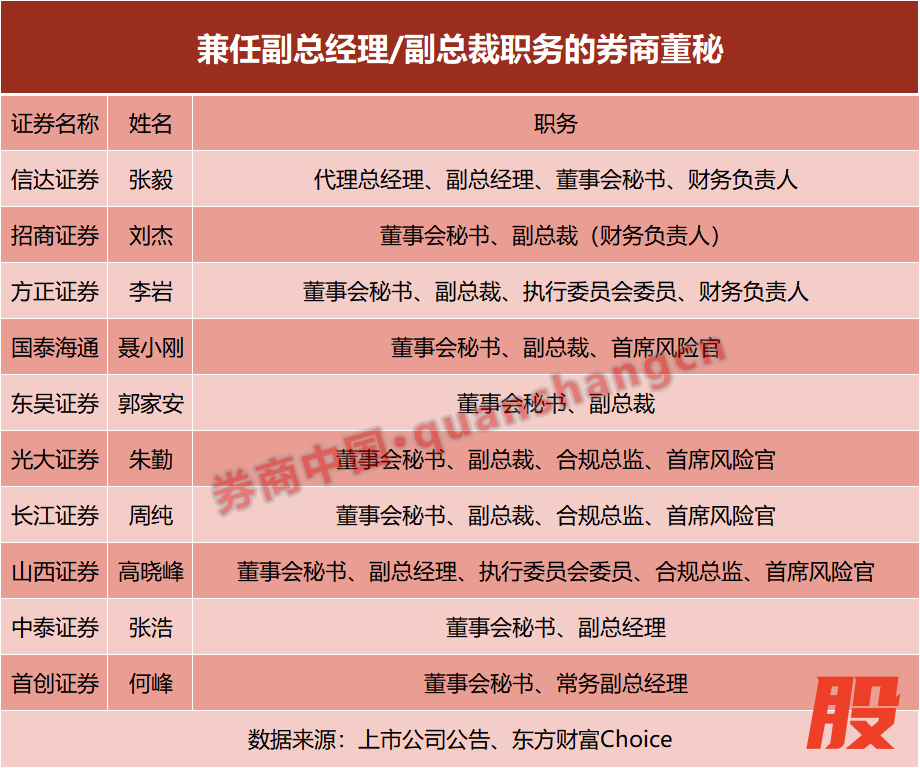 10家券商董秘兼任副总